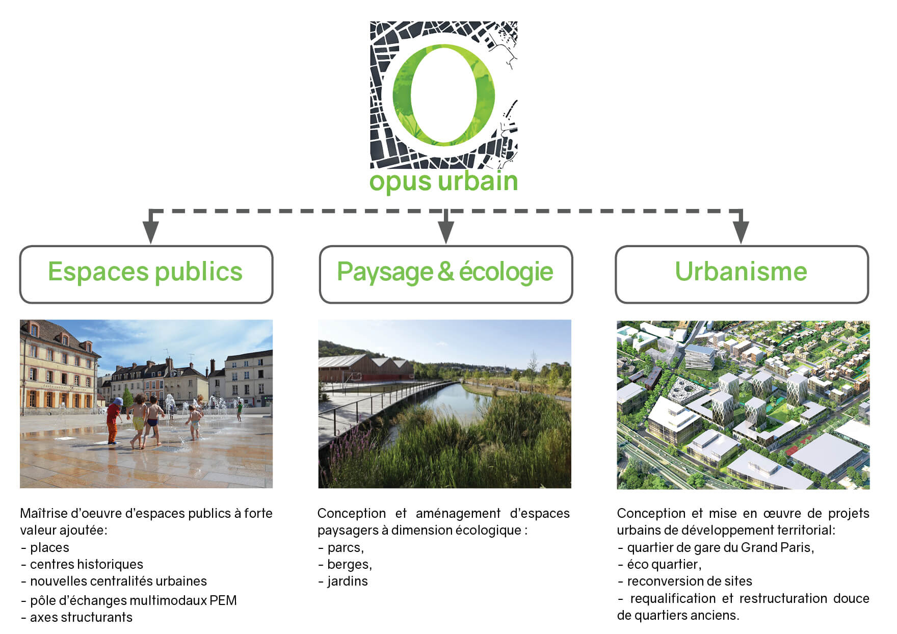 Que ce soit à travers la préfiguration de nouveaux quartiers, la valorisation de secteurs patrimoniaux, la création d’espaces publics de références ou la création de parcs, l’agence OPUS URBAIN se met aux côtés de l’action publique, des collectivités et des acteurs privés, pour faire émerger des lieux de vie attractifs, conviviaux, porteurs de sens et responsables.