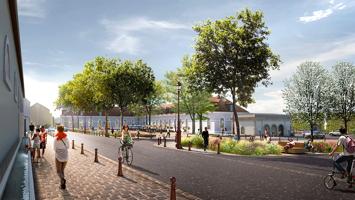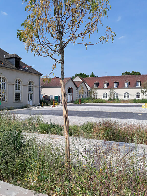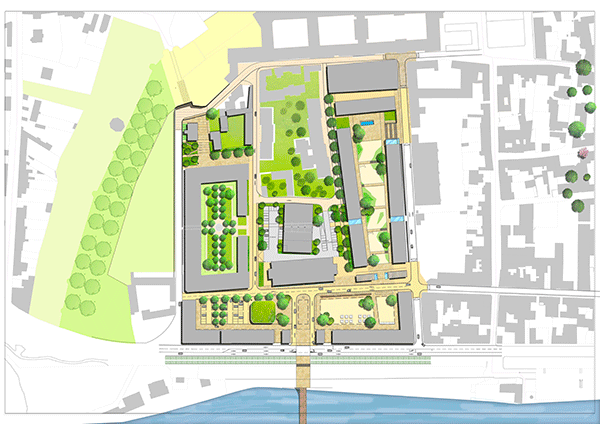 A travers les aménagements proposés, le projet permet de réouvrir ce site historiquement enclavé. La singularité des pleins et des vides est conservée mais l’ensemble du secteur est réunifié et mis en relation avec son environnement, par le biais d’un travail qualitatif sur les sols et une trame végétale à grande échelle. Une place publique centrale est crée de manière à constituer une polarité, un lieu de destination animé en bordure de l’Oise.